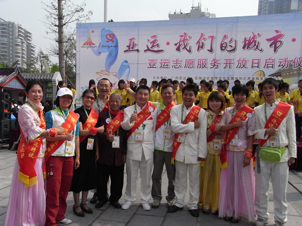 11月21日,亚组委在陈家祠广场举行大型志愿服务开放日活动。今天,作为传说广州亚运特使的我全程参与了活动。下午去到了“新生活驿站”与志愿者们一起工作半小时,体验驿站志愿者的生活。