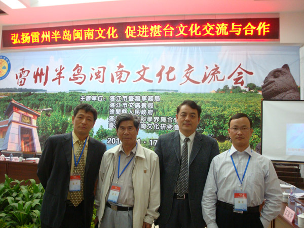 “2010雷州半岛闽南文化交流会”由湛江市台湾事务局、湛江市文广新局、徐闻县人民政府、湛江市社会科学界联合会、台湾中华闽南文化研究会联合主办,共有来自台湾、湛江两地的有关学者100多人参加。国台办交流局副巡视员李海阳,海南省台办巡视员陈衍顺,广东省台办交流处处长林华轩、台湾中华闽南文化研究会会长陈冠甫,湛江市人大常委会副主任李尚富,徐闻县县长林海武等出席了会议。