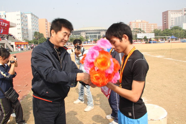 不管是比赛前还是比赛后,他始终保持着自信从容的笑容,正是这种从容,自信的心态,让他保持良好的状态,轻松得冠。他是曾刷新校运会400米决赛纪录,来自08体教(3)班的李梓杰。“今天的表现,我不太满意,只跑了51﹒14秒,在不久之前我跑了49﹒38秒,没有发挥到平日的水平。”可见他对赢得这次比赛是多么的自信,这就是一名胜利者的风采。