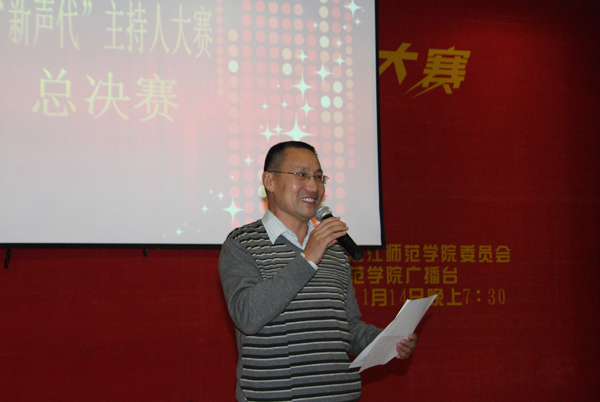 湛师新闻网11月16日讯 11月14日晚,由校团委主办、校广播台承办的“新生代”校园主持人大赛总决赛在弘雷楼311室举行。校团委李粤书记、李发武副书记出席了比赛。担任大赛的评委有校学报副总编宋立民教授、博雅教育中心蒋金晖副主任、国家级普通话水平测试员林小泉老师。