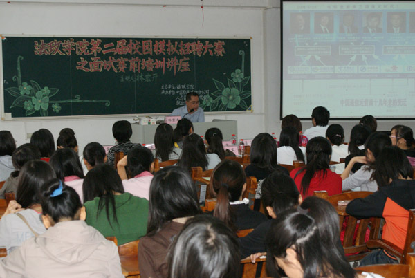 据了解,此次的面试技巧讲座为继该学院第二届校园模拟招聘大赛之简历制作培训的第二个讲座。大赛以“尽显职场魅力,共圆就业梦想”为主题,由法政学院主办,中国联通湛江市分公司、人力资源管理协会、就业服务中心承办,将历时一个多月,包括简历制作和招聘面试两大部分,并且在大赛前都会举行相关培训讲座。比赛主要针对法政学院08、09级学生而开展,旨在落实该学院分层次培养人才的工作思想,提高学生的综合素质和核心竞争力,让广大同学提前学习职场知识、真实体验职场招聘,在模拟招聘中找准自身定位,应对日益严峻的就业形势。
