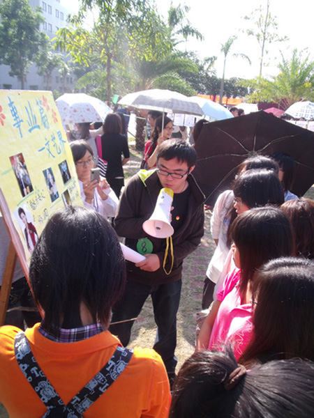 随后,啦啦操拉开了图片展的序幕。其中图展分为家庭篇、事业篇、维权篇。 现场吸引了许多同学来参观,各个板块的讲解员都尽心地为参观的同学细致讲解。对于表现优异的讲解员,同学们可以为她们投上神圣的一票。随后的现场知识竞答环节则以其独具诱惑力的小礼品吸引观众的眼球,观众们积极抢答。
