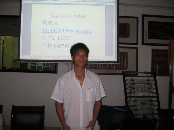 在培训中,党建助理周光发主要对该院发展党员工作程序为现场党支委作讲解。从确定入党积极分子、确定发展对象、接收预备党员、预备党员转正等四个重要程序的相关要求进行了说明,并针对大一到大四不同年级不同情况进行了具体的分析。同时,周光发同志重点讲解了学生党组织生活程序,强调了党员会议中需要注意的事项,提醒各支部委员务必弄清楚相关情况,以致学生党组织生活顺利开展。接着,各党支部委员提出了发展党员中遇到的问题,党建助理给予了详细而满意的回答。