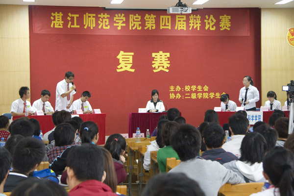 湛师新闻网11月9日讯 6日上午,由校团委、学生会主办的湛江师范学院第四届辩论赛复赛在学生活动中心学术报告厅举行,人文学院、法政学院、外语学院、教科院、化学学院、体科院等单位在上一周胜出之后,迎来了更激烈的争锋。思政部副主任袁铎教授、陈东英副教授和商学院陈智崧老师担任大赛的评委。