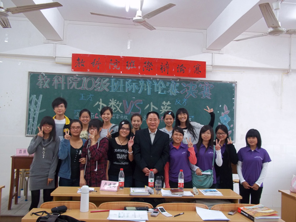 湛师新闻网11月5日讯 昨天下午,教科院在燕雷楼402室举办了以“高等学府应不应该向游客开放”为辩题的班际辩论赛决赛。10小数班和10小英班分别代表本次辩论赛中正方和反方。教科院卢健筠老师被邀请为本次辩论赛的嘉宾。