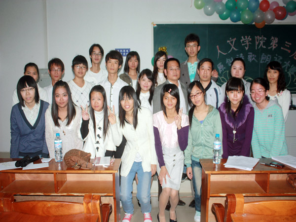 湛师新闻网11月1日讯 为弘扬书院精神,倡导人文气息,人文学院昨晚在弘雷楼举办了第三届原创诗歌朗诵比赛。该院谢应明书记、张德明博士和辅导员詹绍姬老师观看比赛并担任评审。