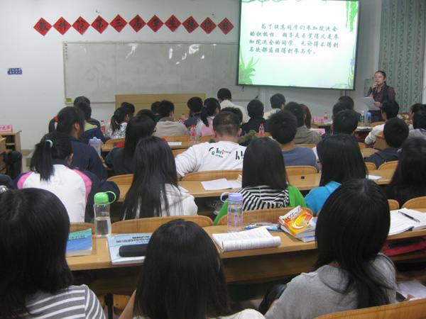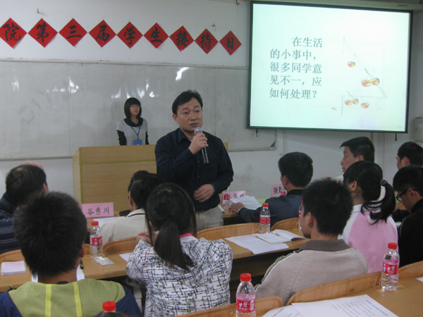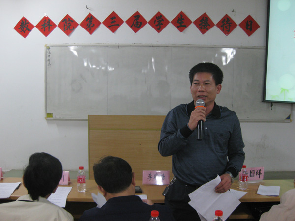 湛师新闻网11月1日讯 为维护同学们的合法权益,倾听同学们的心声,昨晚,数科院于榕燕楼407教室举行第三届学生接待日。学校教务处张国祥副处长、校公寓管理中心陈奕鹏主任和数科院党委吴华明书记、李晓培院长、谷秀川副院长、唐洪浪副书记、数学系主任刘小松教授和辅导员参加活动。