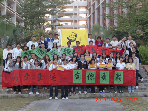 宣传活动以“情牵亚运,有你有我”为主题,包括横幅签名、亚运知识问卷调查、亚运留言板等项目。早上九点,活动在我校正式拉开序幕。同学们踊跃参与,纷纷在留言板上写下对广州亚运的祝福与憧憬。