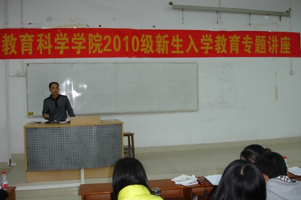 湛师新闻网10月29日讯 昨晚,教科院2010级新生入学教育专题讲座第五场之“分享成长经验,坚定理想信念”在弘雷楼611室举行。该院党委郭和才副书记、辅导员卢祖琴老师出席了讲座。