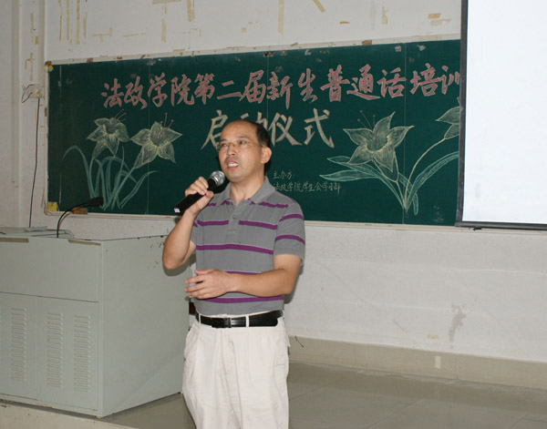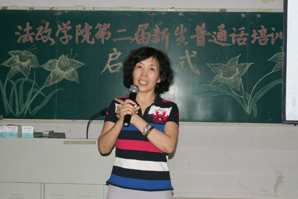 湛师新闻网10月24日讯 昨天下午,法政学院在弘雷楼211教室举行第二届新生普通话培训暨启动仪式。该院副院长雷冬文、党委副书记全柱、校艺术教育中心韦星老师以及辅导员彭展、陈琳琳老师和10级全体学生参加了启动仪式。