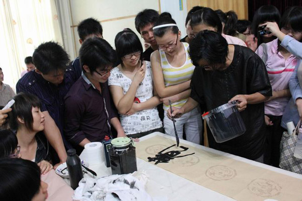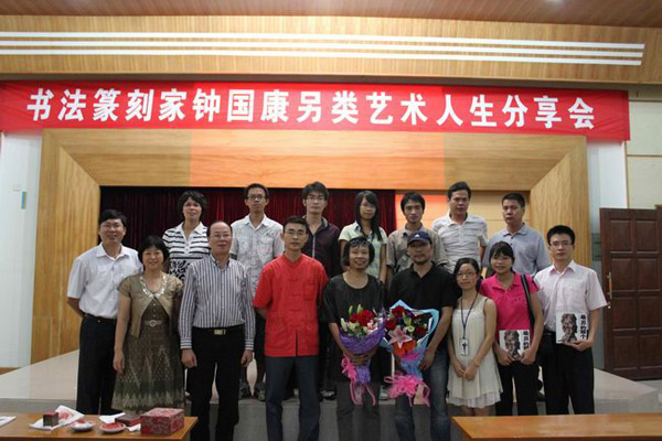 书法篆刻家钟国康向大家介绍说,自己小时候家境非常贫寒,家中孩子多,从小干很多活,长的丑,常常被人取笑。他告诉现场的同学们,自己曾经动过轻生的念头。然而,一个看似没有任何人喜欢的人,创作期间的他极为疯狂投入,他给自己判了12年有期徒刑,在家里关闭了4380天,天天练习书法、篆刻,最终有了他今天的成就。