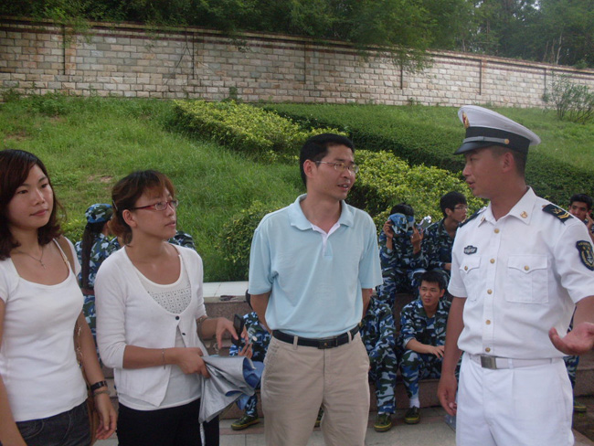 全柱副书记向教官们和各班助理班主任询问了学生的军训情况并表达了对教官的感谢之情,赞扬2010级新生在军训中表现出的吃苦耐劳、顽强拼搏的优秀品质。他希望教官们多与同学们沟通,期望学生在教官的引领下,逐渐培养坚强的意志品质和可贵的团队精神。在休息期间,全副书记在与学生交流中指出,军训是提高技能、体质与思想等各方面综合素质的有效手段,希望同学们通过军训能够进一步培养国防意识和爱国主义,增强身体素质,以最好的成绩向学院、学校汇报。