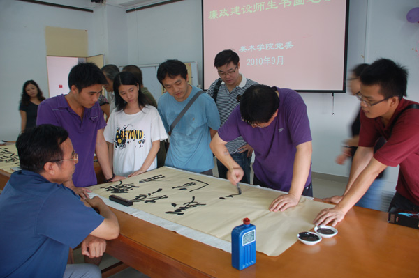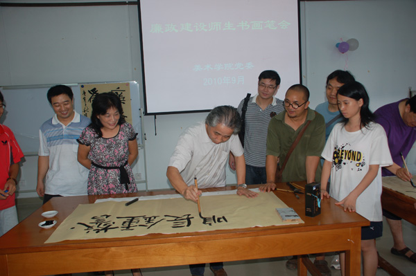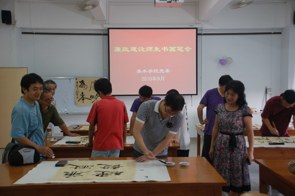 美术学院党委希望通过开展“廉政建设师生书画笔会”等一系列廉政建设活动,增强党性观念和纪律意识与建立和完善廉政长效机制结合起来,进一步加强党员的党性修养和思想作风,积极为学校的科学发展、和谐发展做出应有的贡献。