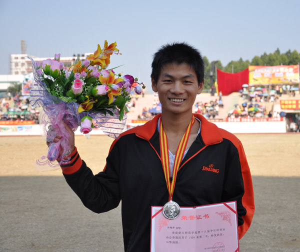 “跌倒了,一定要爬起来!没有过不了的困难。能获此奖,其中我要感谢老师和同学们对我的帮助,感谢家人及所有亲朋好友的支持,感谢生活给我带来的精彩与磨练,这一切的一切造就了今天崭新的自我”!