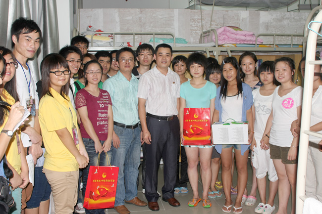 湛师新闻网9月26日讯 昨晚,为了解我校2010级新生的学习生活情况,校团委李粤书记、李亚九老师等领导老师,带领校级学生机构主要干部走访新生宿舍,与新生们进行了亲切的交谈,并为他们送上了书籍和礼品。