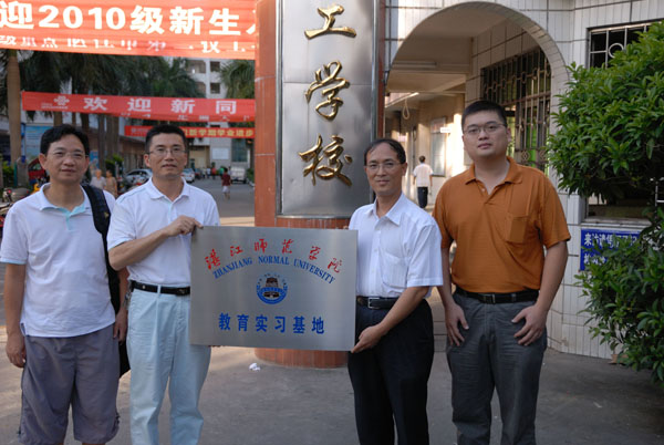 湛师新闻网9月19日讯 9月16日,信息科学与技术学院张炜副院长到带队参观湛江市第二技工学校,与二技校赵楚国副校长就合作事宜展开了深入交流,并代表学校参加实习基地挂牌仪式。