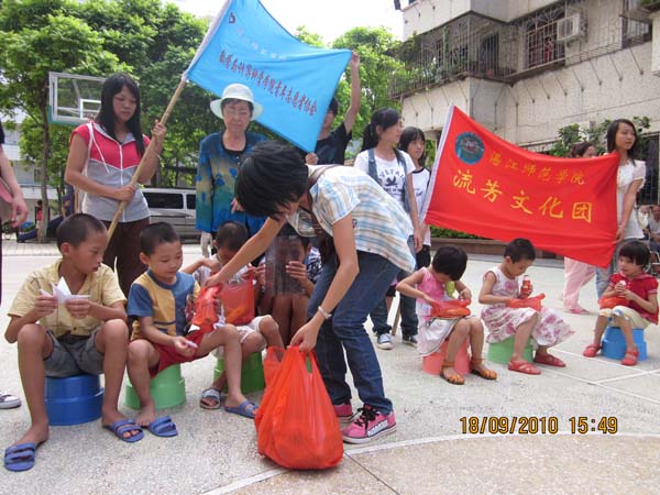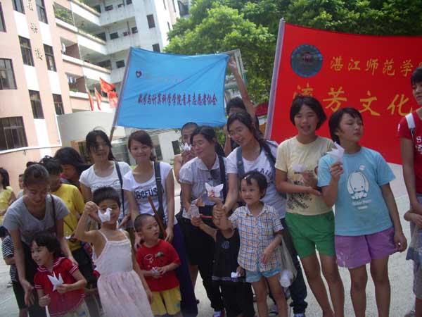湛师新闻网9月19日讯 昨天下午,流芳文化团与数科院联合组织的志愿者队伍在流芳文化团指导老师郑光华的带领下,走进了湛江市儿童福利院探访儿童,并开展了一系列的慰问、关爱儿童活动,让小朋友们充分体验生活的乐趣与光明。此行,还受到了福利院全体人员的热烈欢迎。