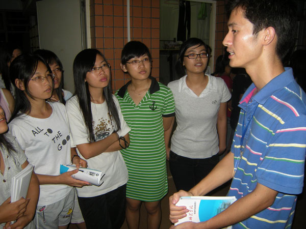 此外,干部们发给新生维权途径的小纸条和《湛江师范学院校级学生机构简介》,并为他们简要介绍了学校各部门招干的流程、要求及如何去面试等。