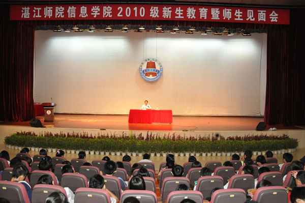 湛师新闻网9月15日讯 9月12日,信息学院2010级新生入学教育暨师生见面会在音乐厅隆重举行。信息学院党委林汉书记、林荣新副书记,张炜副院长、邓明副院长,各系主任、辅导员以及班主任及助理出席了见面会。该院10级全体新生和专升本的同学参加了会议。会议由徐灵老师主持。