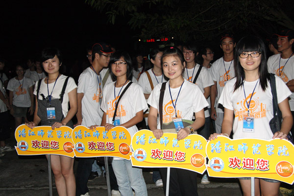 湛师新闻网9月11日讯 迎新同学,展新风貌。为表示我校师生对2010级新生的热烈欢迎,确保迎新工作顺利进行,今早凌晨3:30,在校团委李粤书记、李亚九主任的带领下,湛江市火车西站的迎新工作火热进行。