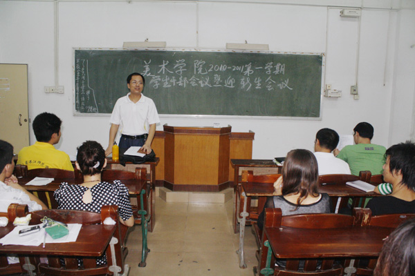 湛师新闻网9月10日讯 9月8日,美术学院在教二107举行2010-2011第一学期学生干部暨迎新生工作会议。美术学院党委林志军副书记,辅导员刘启红、谢圣明、黄钰晶及美术学院学生会,团委、党员、各班班长等学生干部参加了本次会议。