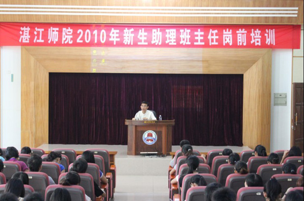 湛师新闻网9月5日讯 为做好2010级新生接待、教育与管理工作,提高新生助理班主任工作能力,帮助新生及时适应大学学习生活,9月2日至3日,学生工作部在图书馆学术报告厅举办为期两天的2010级新生助理班主任岗前培训,对全校200名新上岗助理班主任进行培训。