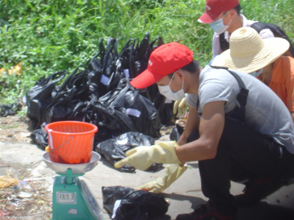 调研人员在两村分别收集30户农户24小时产生的生活垃圾,并对垃圾成分和产量进行分析。他们冒着火热的太阳,在垃圾池旁边开展分类工作。此外,他们进村挨家挨户对如何综合处理农村生活垃圾的先进技术进行了宣讲与调查。同时,他们还向农户发放宣传小册,最大限度的宣传农村生活垃圾综合处理技术,共同创建优美祥和的农村生活环境。