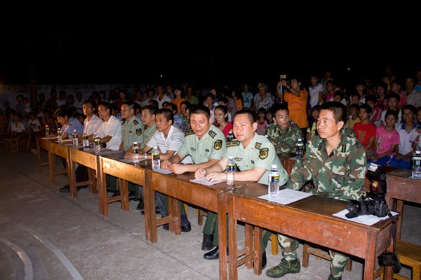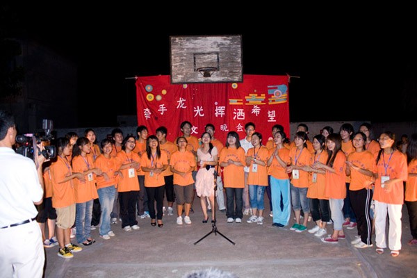 晚会以“牵手龙光,挥洒希望”为主题,在活力四射的开场舞《不怕不怕》的表演中拉开了帷幕。民安镇党委委员、财政所所长陈存乔同志发言,对服务队致力于龙舍村教育、卫生、科技、文化的发展表示感谢。晚会共出演了小合唱《送别》、小品《推销风波》、啦啦操表演、手语表演《感恩的心》、大合唱《朋友》等十三个节目。作为特邀嘉宾的边防派出所表演了激烈的特战棍的节目。