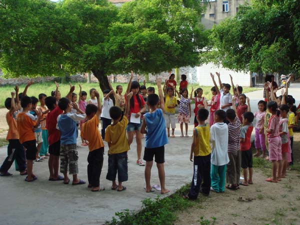 发音是学好英语和提高英语口语能力的基础。服务队英语组的老师通过采用“疯狂英语”的教学方法,纠正农村小学的孩子们错误的和不良的发音习惯,同时让学生们感受英语的魅力。晨读时间到了以后,各班学生在本班英语老师的带领下,围成一圈,大声地朗读单词和短语。短短的四十分钟里,读英语的声音一浪高过一浪,“疯狂英语”的疯狂得到了充分体现。学生们也是第一次以这样的方式进行英语早读,都表现地相当兴奋,热情很高。