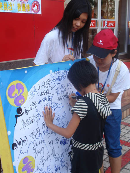 亚运宣传活动中,在“广州亚运城市志愿者”、“畅想亚运“社会实践服务队负责人江海同学的带领下把活动共分四个环节,分别为向市民派发亚运知识传单,亚运图片、资料展示及解说,“广州我撑你”现场海报签名以及体育游戏互动环节。其中,“广州我撑你海报”收集了湛江与化州两地市民的支持亚运签名,将会交到亚组委志愿者部。在整个宣传活动中,服务队志愿者表现出极大的宣传热情,他们分工合作、各司其职,耐心地向前来的市民解说亚运知识。现场的市民也都非常乐意了解相关的亚运知识,纷纷前来活动现场咨询。