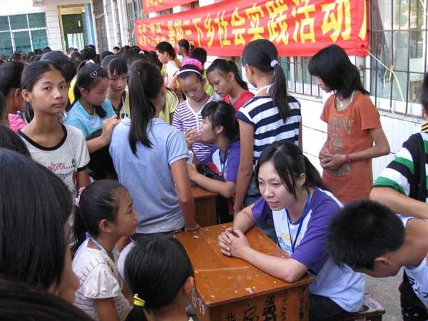 湛师新闻网7月19日讯 为了让实践基地下六中学的学生更了解上海世博会,并学会正确对待学习和生活中的问题,拥有更健康的心理, 7月19日,我校生科院“暖溪”服务队在三下乡实践基地开展世博图片展暨心理咨询活动。