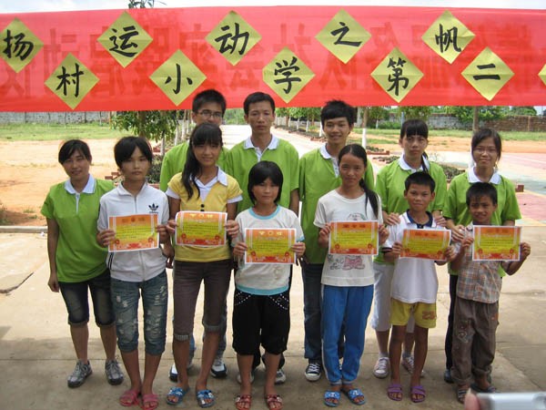 旭日冉冉地升起,柔和的日光洒在一群充满青春活力的孩子们的脸上。趣味运动会在学生们的喧闹声中拉开了序幕,骑车竞赛、集体原地跳绳比赛、火车赛跑、六人七足、乒乓球接力赛等等一系列的精彩有趣比赛吸引了学生们的热情参与。学生们激情飞扬,欢声笑语回绕在淳朴的吴村小学的上空。最后,六年级和四年级获得了团体优胜奖,每位参赛选手都获得丰富的奖品。