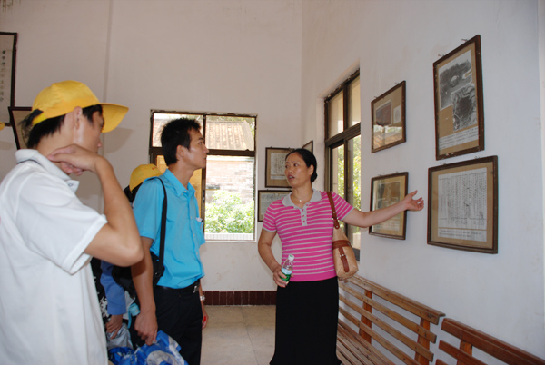 会后,欧美珍副院长还和辅导员莫毅老师、服务队队长们一起前去参观革命烈士黄学增同志之故居。她看着有关革命烈士黄学增的历史资料,感叹一番,“敦文村是一个有着历史文化传统,文化底蕴较厚的村庄。”她希望服务队的大学生们要好好教育学生、引导村民正确保护历史文化遗迹,这样才能更好地进行文化传承。