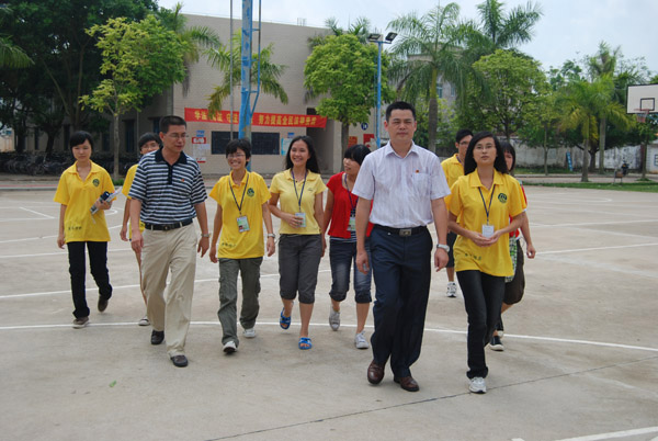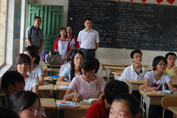 上午,李粤书记一行首先到达官渡东岸中学,在服务队队长的引导下,分别视察和了解了队员的住宿环境、教室情况,深入了解学生参加社会实践的现状。李粤书记在走访的过程中对队员们表示了亲切的问候,并叮嘱他们要以自己在大学中学习和养成的科学学习方法和教育理念去感染和指引学生,创新方法,搞活课堂,寓教于乐。同时,在学习和生活上均要结合初中生的身心发展特点,有针对性地开展实践活动,在学习和生活上均要以身作则,引导学生建立正确的人生观、价值观,展示出湛师学子所应有的精神风貌和大学生的高尚品德,使自己通过各种实践活动得到实实在在的锻炼,获得有益的经验,提升完善自己。李发武副书记也语重心长地叮嘱队员们一定要注重安全,以最佳的精神状态投入社会实践活动。