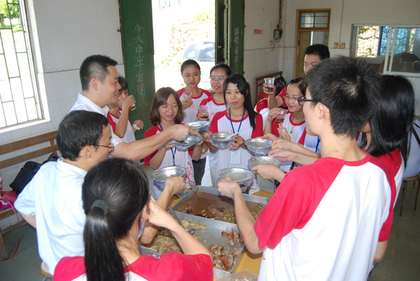 李粤书记一行最后还与“驿路梨花”实践队的全体队员们共进午餐。“驿路梨花”社会实践服务队的队员对李粤书记一行的到来和亲切的关怀感到非常开心、深受鼓舞,大家都纷纷表示在接下来进行的实践活动中一定不怕艰难,深入实践,不负领导老师的期望。