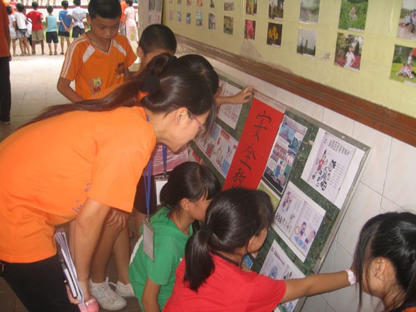 湛师新闻网7月15日讯 为加强同学们对自然灾害的认识,提高自我保护的能力, 今天下午,湛江师范学院物理学院团委“夏日里的春天”社会实践服务队在吴川春晖小学开展以“安全常在心”为主题的安全知识教育宣传活动,全校一百多名师生一起参加了这场活动。这次活动得到了湛师团委李粤书记,李发武副书记,李亚九主任及吴川市团委书记林通等领导的肯定。