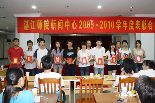 党委宣传部新闻科科长、湛江师院报编辑部主任黎祎宣读了《湛江师范学院新闻中心学生记者干部的聘任决定》、2007—2009年全国和广东高校好新闻评奖结果,以及《2009—2010学年度湛江师范学院新闻中心优秀记者的表彰决定》。出席会议的领导老师分别为学生干部、优秀学生记者颁发了聘书和奖状。