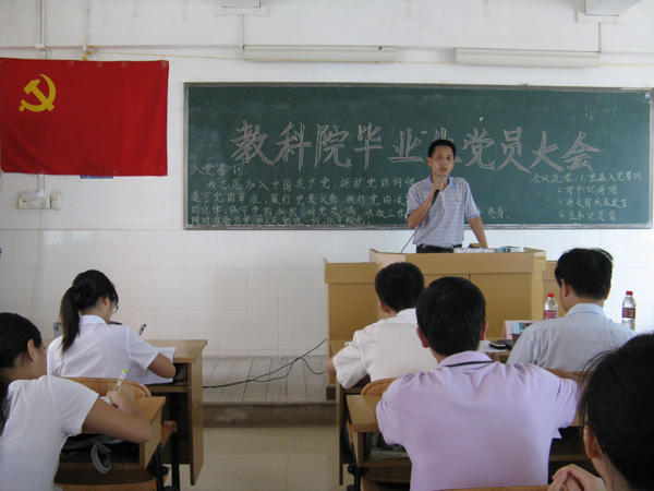 昨天,教科院于燕雷楼402教室举行了06级毕业生党员大会。该院党委王列盈书记、郭和才副书记,辅导员魏珂、卢祖琴老师以及06级的全体毕业生党员出席了本次大会。