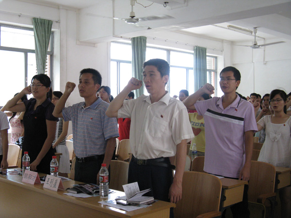 最后,王列盈书记以一个走过了23年党员生涯的长辈身份强调了端正入党动机、提升党性修养的重要性。他抛弃了陈旧的说教形式,用一连串意味深长的问题,叩击着与会人员的心灵,让他们在思考中成长,在成长中成熟。