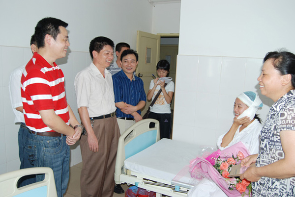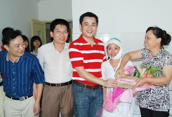 湛师新闻网6月21日讯 病魔无情,人间有爱。6月18日上午,得知数学与计算科学学院贫困生关春霞同学因患左腮肿瘤病而入住人民解放军第四二二医院手术,校团委李粤书记、数科院党委吴华明书记、李晓培副院长、校团委李发武副书记和数科院唐洪浪副书记等领导老师前往探望,送去了学校师生的关心和问候,并向她送上慰问金3000元。
