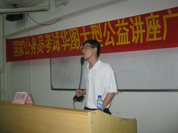 湛师新闻网6月20日讯 18日晚上,由广东湛江分部的关天锌老师主讲的国家公务员考试华图大型公益讲座在弘雷楼705举行。