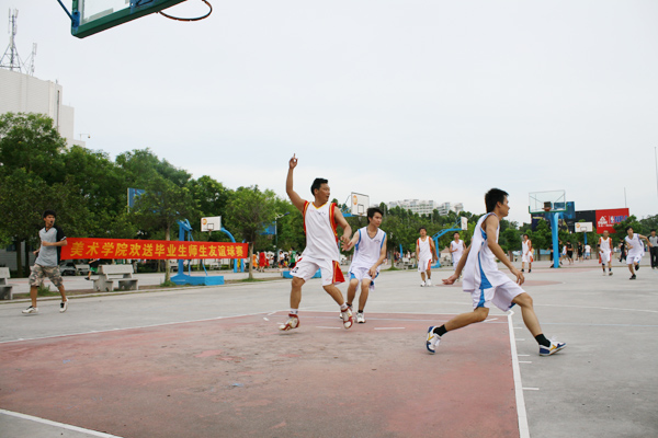 湛师新闻网6月19日讯 昨天下午,美术学院在新区五号篮球场举行欢送06届毕业生师生友谊篮球赛。美术学院巨云和副院长,刘启红辅导员、部分专业教师以及06级毕业生参加了球赛。