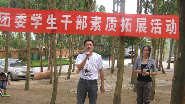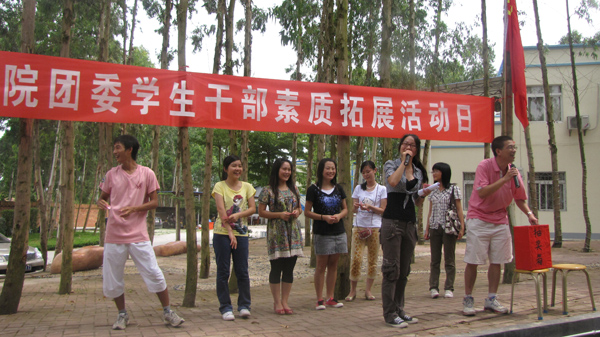 为了增强团学干部队伍的凝聚力,提高团学干部工作积极性,加强老师与学生之间的沟通,促进交流,增进情谊,并进一步深化共青团教育思想大讨论,校团委组织开展了本次团学干部素质拓展活动。活动现场,各学生机构互相组队,通力合作,一边享受着校外活动的乐趣,一边畅谈生活、学习上的点滴和交换工作上的心得体会,气氛非常热烈。在素质拓展活动的过程中,穿插了丰富独特的文娱表演活动。学生干部们发挥聪明才智,为在场的团学干部和老师们带来精彩的节目。歌词串烧和舞蹈秀让大家大饱耳目之福;精彩的武术表演让大家领略了表演者精湛的技术;篮球杂技、百家讲坛模仿秀等节目让大家惊叹学生干部们的多才多艺。精彩的表演不仅为大家带来欢声笑语,还赢得了大家的阵阵掌声。