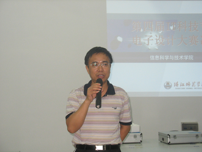 湛师新闻网6月9日讯 6月7日晚,由信息学院电子协会主办的第四届IT科技节之电子设计大赛决赛在雷阳楼B栋707室举行。信息学院党委林汉书记,电子系龙世瑜、陈新原、魏武、莫长江以及梁启文老师等出席了比赛,并担任评委。