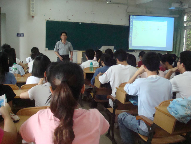 课堂伊始,邓老师就强调作为一名中学数学老师如何备好课,因为写好教案是做好教学工作的首步,充分得准备可以为课堂经验不足我们提供信心和勇气。接着,他就怎样组织课堂展开讲述,他以高中数学必修5数列为示范,他指出在上课之前一定要熟悉教材,备课也不能只是备一节课,而是备一章书的内容,这样才能到达知识的连贯性。另外,他结合一些课堂管理的实例分析了在课堂上要始终鼓励学生为主,注重教学要从课本延伸到课外去,不能照本宣科,而是要拓展学生的思维能力。他还就如何求数列的通项公式这一问题解析了学生的能力不是教出来的,而是学生自己在解题活动中练出来的,所以要学会怎样创造课堂的高潮,让学生会用课堂知识解决问题。