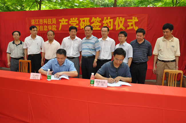 据悉:此次合作是在我校信息学院、湛江市科技局的积极倡导下达成的,其目的是全面落实科学发展观,加强校企间的“产学研”合作,培养学生的实践能力和创新精神,提高教育教学质量,促进企业技术创新及经济的快速发展而进行的。今后双方将本着“互惠互利、优势互补、共同发展”原则,在生产、教学与科研等方面开展一系列合作,积极做好人才培养,建设高素质人才队伍,服务地方经济建设。今年以来,信息学院分别还与廉江市信息中心、遂溪县信息办开展过相关合作,已取得初步实效。
