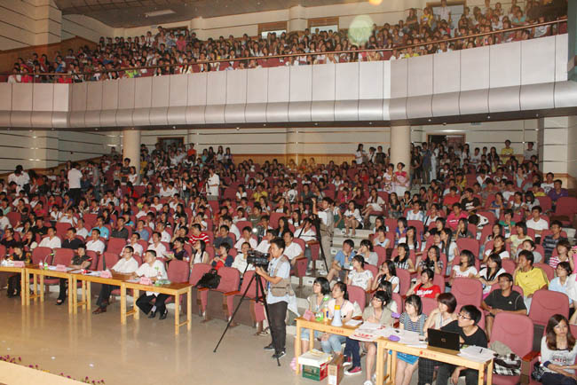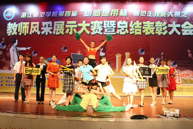 湛师新闻网6月4日讯 6月2日晚,我校第四届“动感地带杯”师范生技能大赛之教师风采展示大赛暨总结表彰大会在音乐厅举行。校领导张兰英副书记、刘周堂副院长,教务处朱城处长、学生处黄达海处长、博雅教育中心李赣主任、校团委李粤书记、李发武副书记、关工委李德代主任和各二级学院党委副书记、辅导员等领导老师出席了比赛。大赛由学报编辑部常务副主编宋立民教授、教科院白彦茹教授、博雅教育中心蒋金晖副教授、学生处副处级辅导员谢巧云老师担任评委。