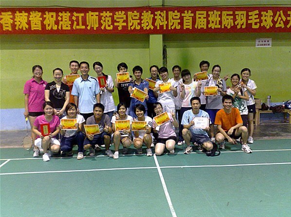 湛师新闻网6月4日讯 昨天晚上,教科院在湛江羽毛球馆举行了“茂德公杯”首届班际羽毛球公开赛之团体赛和闭幕式。该院党委郭和才副书记,辅导员卢祖琴老师,魏珂老师参加闭幕式。