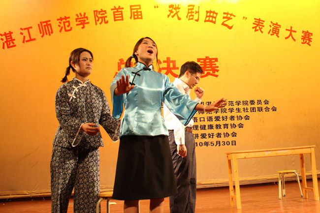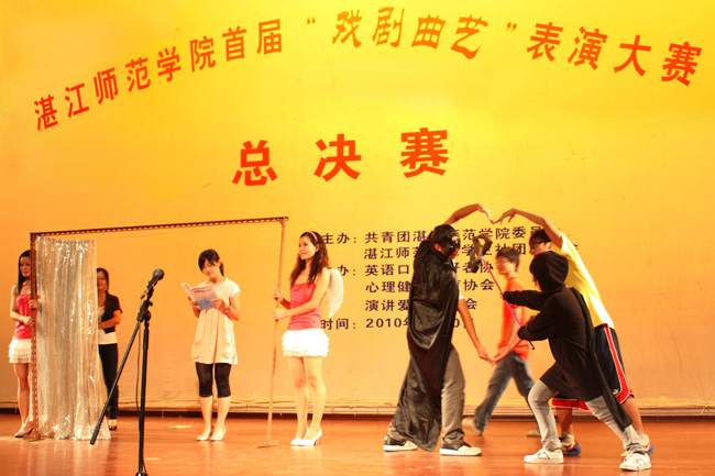 湛师新闻网6月2日讯 青春的音符在跳动,激情的火焰在燃烧。5月30日晚,由校团委、校学生社团联合会主办,英语口语爱好者协会、心理健康教育协会、演讲爱好者协会联合承办的第八届“五月风”社团文化艺术节之首届“戏剧曲艺”表演大赛总决赛在音乐厅举行。校党委刘海涛副书记、校团委李粤书记、关工委李德代主任、校团委李发武副书记等领导老师出席活动现场。学报常务副主编宋立民教授、学生工作处副处级辅导员谢巧云老师、博雅教育中心肖庆玲老师担任大赛评委。