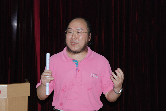 成立仪式结束后,教职工合唱团开始首次合唱训练。首先音乐学院副院长孙建华演唱《我们走在大路上》,他以其浑厚嘹亮的歌声赢得在场老师们热烈的掌声。接着,刘福瑞书记在现场活跃的气氛中也与老师们进行合唱训练,训练中结合歌唱理论知识并以身示例,多次即兴演唱。最后,合唱训练在轻松愉快的欢笑声中结束。